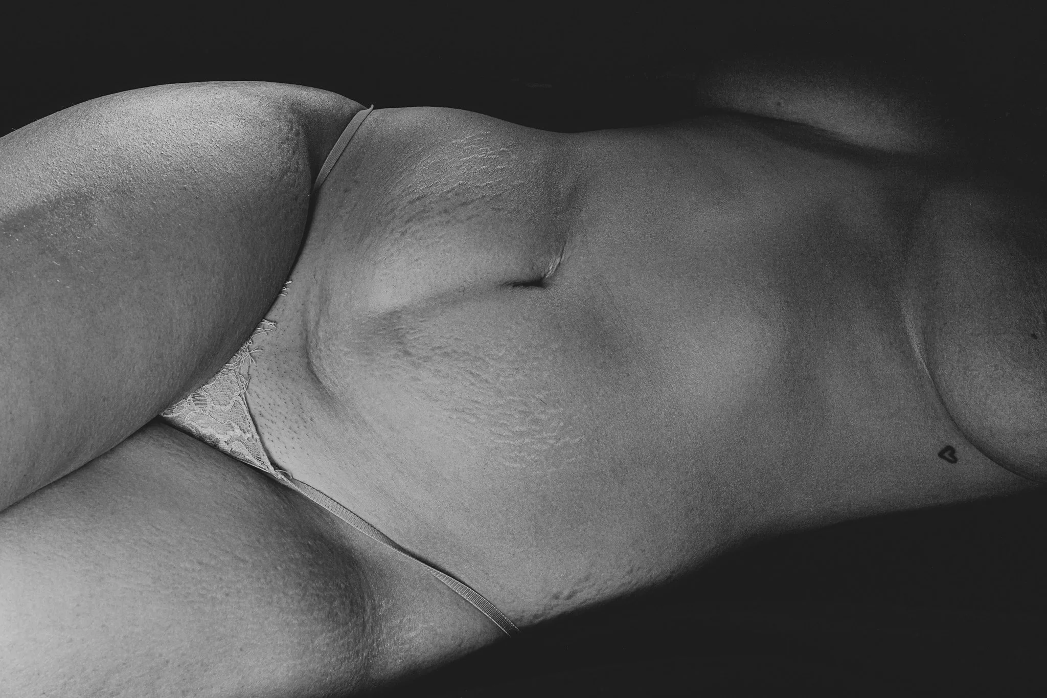 For our first set we documented Mercede’s postpartum body in black and white, focusing on highlighting rather then hiding her stretch marks and skin texture and natural curves. In our second set we showcased Mercede’s blossoming with a soft ethereal set that harmonized perfectly with her dewy skin. We accessorized with butterflies, flowy fabrics and pastel tones. And last but not least for our final set of the day we opted for a sensual and sultry boudoir set.